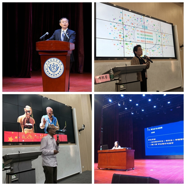 教务处蒋淑敏副处长以《职业与教学》为题的学习指导讲座,向新生普及了我校各学院的专业布局,介绍了学校在教学和学籍管理方面与学生相关的重点内容,希望2018级新生珍惜宝贵的学习时间,在学好专业知识的同时也要注重培养创新思维以及科研能力,希望所有同学能实践医学,守护健康,为走好职业生涯的第一步打下扎实基础。