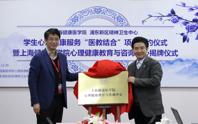 12月26日,学生心理健康服务“医教结合”项目签约仪式暨心理健康教育与咨询中心揭牌仪式在新南苑3号楼211会议室举行。中国心理卫生协会大学生心理咨询专业委员会副主任黄晞建,教育部高校学生心理健康教育专家指导委员会委员张海燕,上海高校心理咨询协会理事长陈增堂,浦东新区精神卫生中心党委书记胡承平、副院长诸秉根,我校副校长许铁峰,学生处、后勤服务中心、教务处、心理健康教育与咨询中心负责人以及来自各学院的党总支副书记和心理辅导员、心理咨询师代表出席揭牌及签约仪式。仪式由学生处副处长(主持工作)、心理健康教育与咨询中心主任吕晓丽主持。