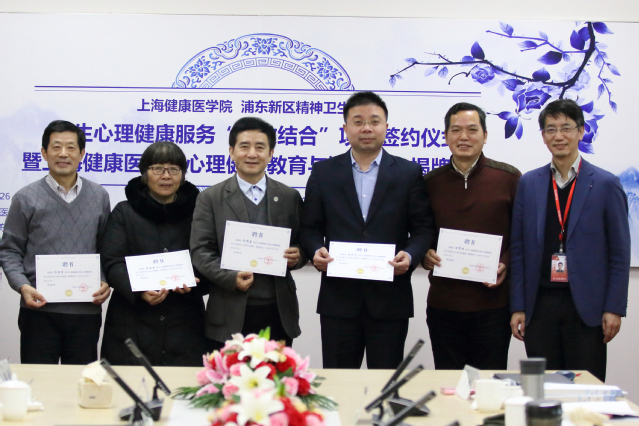 许铁峰副校长与黄晞建教授共同为心理健康教育与咨询中心揭牌。许铁峰副校长与浦东新区精神卫生中心胡承平院长共同签署学生心理健康服务“医教结合”工作合作协议书,将在建立诊疗“绿色通道”、开展心理评估、转介、心理健康教育、现场心理咨询活动、教学、科研、见习等方面展开合作,为我校大学生心理健康保驾护航。聘请到会专家为心理健康教育与咨询中心的心理专家顾问,指导我校心理工作。并为浦东新区精神卫生中心5名兼职教师及兼职心理咨询师颁发聘书。