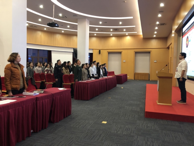 首先,大家认真观看了中央卫视于3月18日同步播出的《新疆的反恐 去极端化斗争》专题片。观看结束后,库尔班·尼亚孜(2017级医疗器械监管班)、木尼热木·阿甫尔(2017级卫生信息管理1班)、太拜苏姆·艾则孜(2017级卫生信息管理1班)等7位少数民族同学带领全体同学深入学习并深刻领会《新疆的反恐、去极端化斗争与人权保障》白皮书内容,他们字正腔圆、铿锵有力地阐明了作为一名大学生对维护国家统一和社会稳定的责任和决心。王子田警官也为同学们做了一次法治宣传与国家安全教育,他根据学校近期发生的几个真实案例,要求大学生应当严格要求和约束自己,严格遵守国家法律与校纪校规,加强安全意识与自我防范意识。