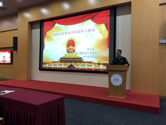 为了进一步提升我校大学生国家安全意识,切实加强大学生意识形态教育,使其正确认识自觉维护社会稳定和祖国统一的重要性,4月15日,学工部以国家安全教育日为契机,在南苑4号楼3楼200人多功能厅组织了一次大学生时政学习座谈,主要内容是集中学习领会国务院新闻办公室于3月18日发布的《新疆的反恐、去极端化斗争与人权保障》白皮书。张江高校派出所王子田警官、当日“三同”辅导员老师与在校全体新疆籍学生参加了此次活动,乌孜老师主持了座谈会。