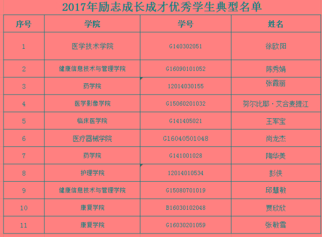 以下为2017年励志成长成才优秀学生典型名单: