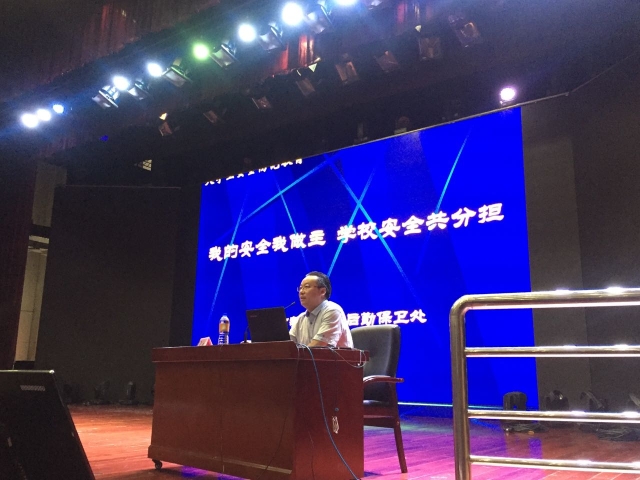 市教委后勤保卫处处长、教育部学校规划建设发展中心特聘专家张旭以《我的安全我做主学校安全共分担》为题作了安全法制讲座,他以上海市首届大学生安全知识竞赛的成功举办为切入点,引出高校政治安全、网络安全、治安安全、消防安全、交通安全、反恐维稳等方面宣传教育工作,结合近几年来上海高校大学生安全事故案例,以案释法、以法论事,深入浅出地道出了安全防范的重要性和迫切性,帮助新生们进一步增强了安全防范意识、提高了自救能力,也为营造“人人参与、共建平安校园”的良好氛围起到了积极的推动作用。