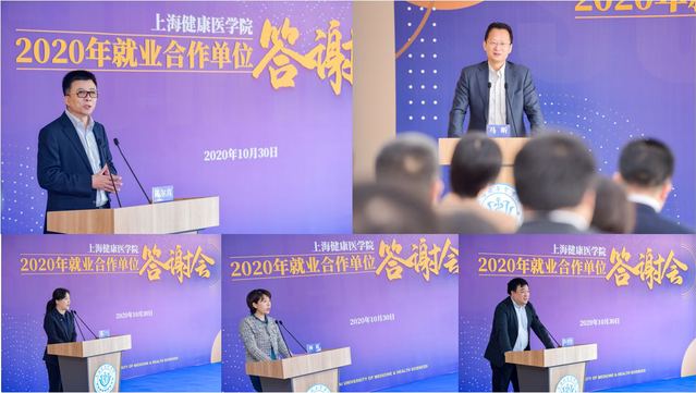 瑞金医院副院长陈尔真、华山医院副院长马昕、虹桥街道社区卫生服务中心主任钱宁、国药控股股份有限公司上海医院销售管理部副总经理杨霞、上海康达医疗器械集团股份有限公司副总经理冯大立分别代表用人单位发言。他们对我校在培养和输送人才上作出的努力表示充分的肯定及感谢,认为上海健康医学院的毕业生德才兼备、勇于担当,具有良好的专业素养,在各个单位都发挥着重要的作用。未来希望在医、教、研深度合作,在专业实践、人才库搭建和学术竞赛活动加强协作,进一步助力医学人才培养,为健康中国战略实施和健康上海建设做出更大贡献。随后,黄钢校长、沈国芳副校长为获奖单位颁发了“最佳雇主”、“十佳就业合作伙伴”、“十佳就业受欢迎单位”、“ 十佳就业实践基地”等奖项。
