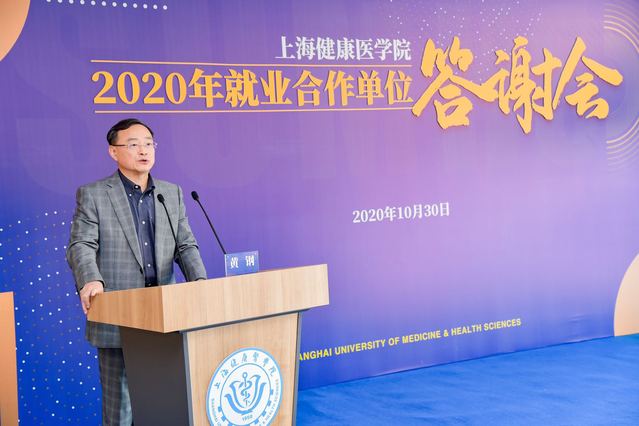 黄钢校长致答谢辞。他代表全校师生对参会的各用人单位表示热烈的欢迎,对长期以来关心支持学校就业和人才培养工作的社会各界表示感谢。黄校长介绍了学校建校五年来在人才培养定位、专业建设布局、国际交流合作、学生各类大赛佳绩等方面的成绩,例举了今年2020届优秀毕业生和抗疫过程中涌现的优秀校友。在未来的合作平台上,他期待和各用人单位能够进一步深入交流,将“立德树人”放在合力育人的首位,在助力健康学子实现个人职业梦想的同时做好学生的价值引领工作;期待未来校企间能够做精准化的需求匹配,将学校育人宗旨和用人需求相结合,更好地为人才成长和用人单位发展服务;期待大家齐心协力,为“健康中国”提供源源不断的卓越“人类健康促进者”。