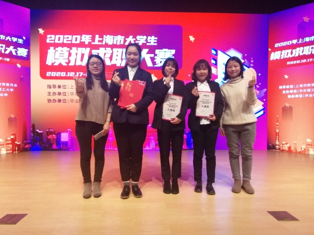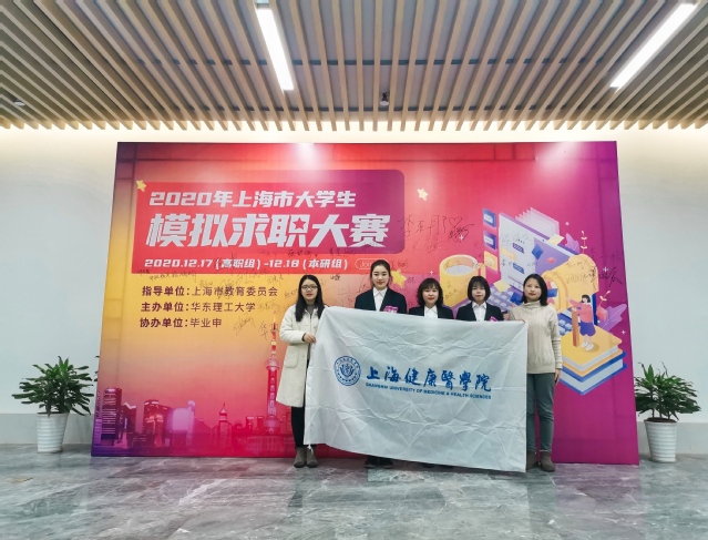 12月18日,2020上海市大学生模拟求职大赛本硕组总决赛在华东理工大学(徐汇校区)举行,本次活动由上海市教委指导,华东理工大学主办、毕业申协办。我校有3名选手参赛,郭子叶、张红娟两位老师带队。经过激烈的赛事比拼,来自我校护理与健康管理学院邬佳妮同学荣获三等奖和最佳复原力奖,医学技术学院蔡柯祎、姚思依同学获得大赛入围奖。