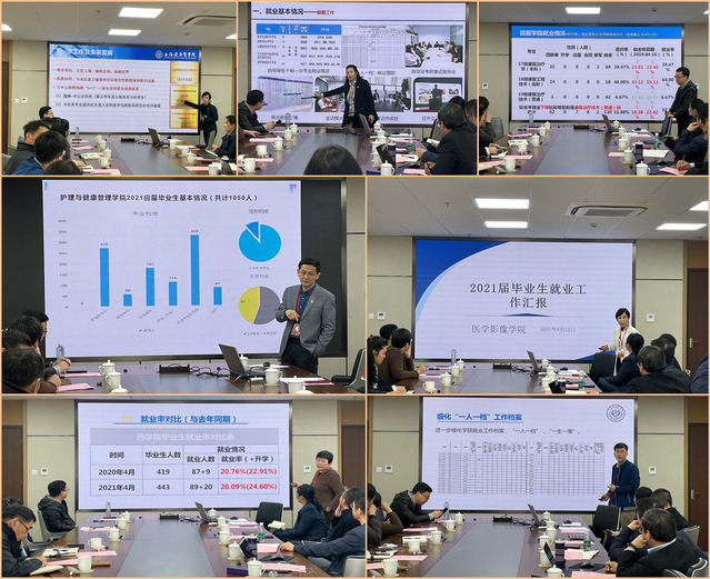 各二级学院负责人分别汇报了近期学院毕业生的具体就业进展,对每类、每位同学情况做了梳理和排摸,提出了就业的难点和突破点,汇报了学院下一步的应对策略和就业推进方向。各二级学院认真落实就业工作“一把手”工程,党政同责,书记和院长切实担负起了就业工作主体责任。“一生一策”、“就业关口前移”、“实习就业订单培养”、“领导包干、导师出资源”,各学院都分享了各自推进就业工作的经验做法。