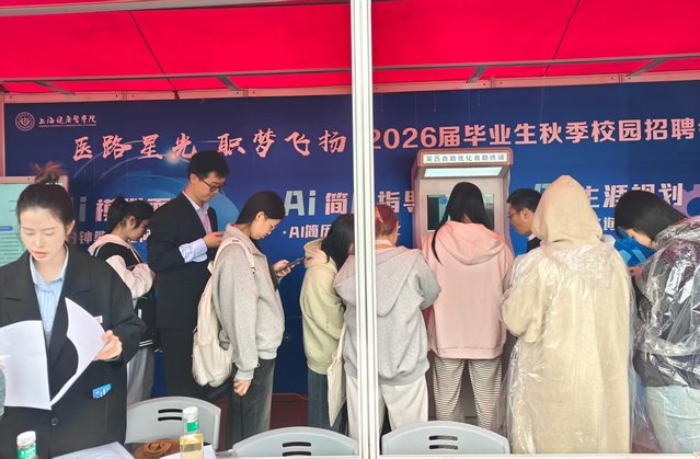 为深入贯彻落实党中央、国务院关于高校毕业生就业创业工作决策部署,助力毕业生实现高质量充分就业,10月30日下午,2026届毕业生秋季校园招聘会在北苑田径场举行。本次招聘会得到了上海市卫生人才交流服务中心、各区卫生健康委员会和浦东新区就业促进中心的大力支持,成功汇聚311家优质用人单位,提供岗位数1521个,需求人数8943人,涵盖了医疗、医药、医械、医技、康复、医管等多个领域。
