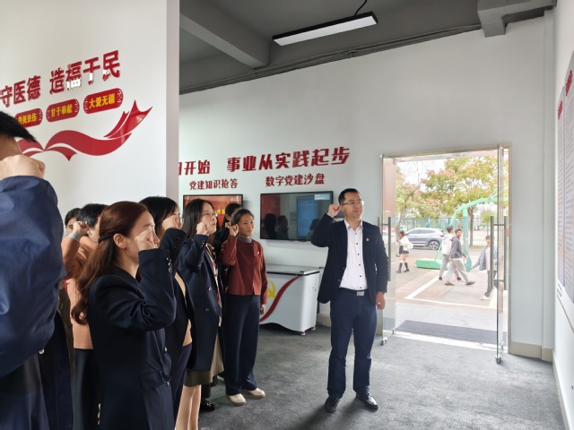 在学工部党支部的主题党日活动环节,全体党员首先通过数字沙盘党史、历次代表大会数字展板等现代化多媒体技术,沉浸式地回顾了党的光辉历程与伟大成就。生动的影像与详实的史料,让大家对波澜壮阔的党史有了更直观、更深刻的理解。随后进行的党建知识竞答环节气氛热烈,党员们踊跃参与,在寓教于乐中巩固了理论知识,提升了政治素养。最后,在庄严的氛围中,全体党员面向党旗,重温入党誓词。铿锵有力的誓言回荡在馆内,表达了同志们坚守初心、担当使命的坚定信念。