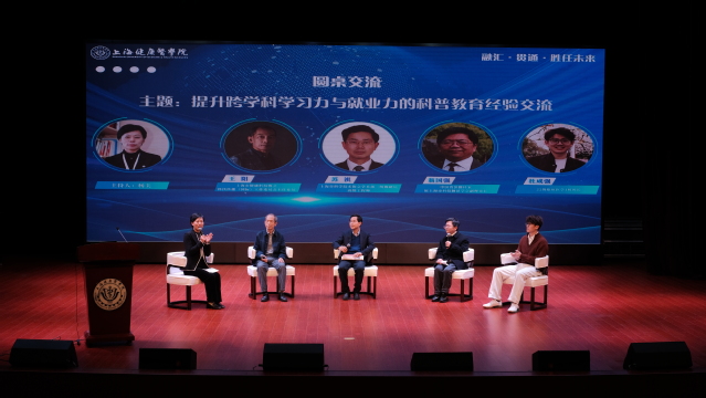 圆桌交流环节,杨美、王阳、苏祺、翁国强与杜成强围绕“提升跨学科学习力与就业力的科普教育经验”展开深入探讨。专家一致认为,跨学科能力培养需要“学科交叉”。王阳强调企业实践的价值,苏祺关注医工交叉,翁国强则提倡多学科协同学习。他们共同呼吁医学生加强医工交叉素养,拥有国际视野、专业精神、人文关怀、科技伦理等。